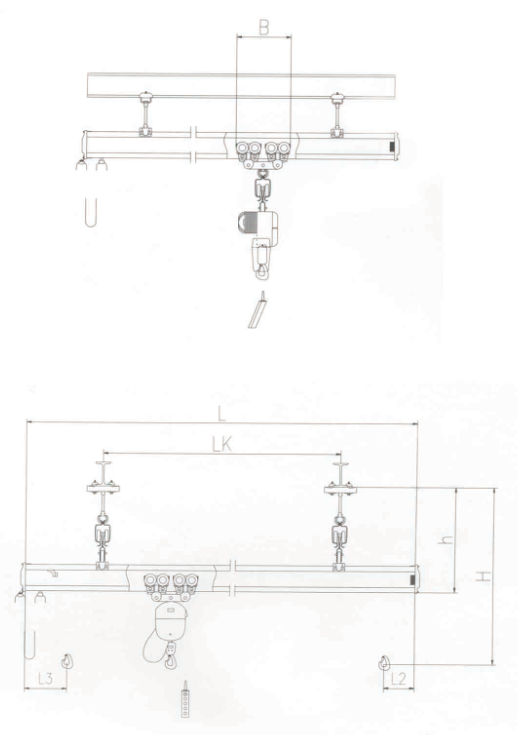 單梁與PK型環(huán)鏈電動(dòng)葫蘆配套使用,電動(dòng)葫蘆運(yùn)行小車可以沿著主梁方向運(yùn)行。